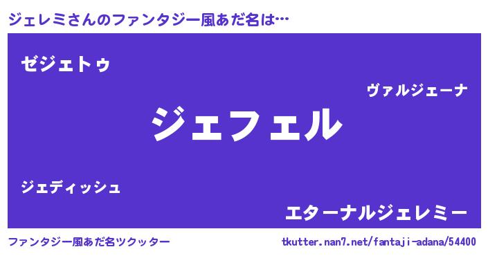 | 意味不明あだ名 | 『ペロリンジェレミ』『自称ジェレミ』 |