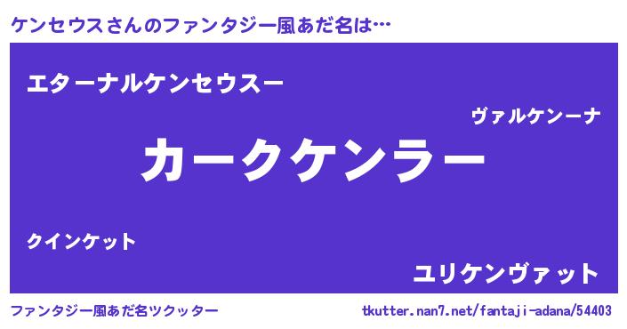 | 欧米人風あだ名 | 『ケンセウス・ステッグマイヤー』 |