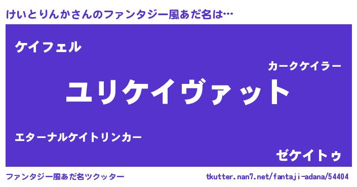| 男性向けラノベタイトル風あだ名 | 『けいとりんか~年齢イコール彼女いない歴の魔法使い~』 |