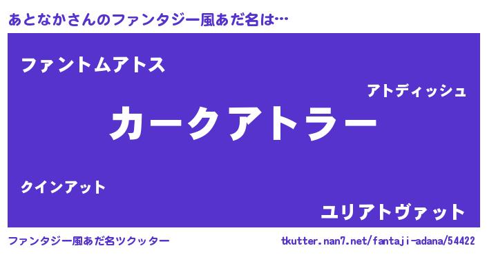 | 男性向けラノベタイトル風あだ名 | 『あとなかに滅ぼされるだけの簡単なお仕事です』 |