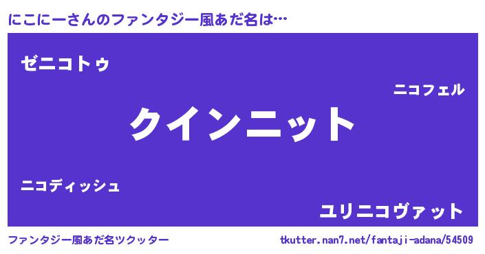 | 男性向けラノベタイトル風あだ名 | 『ノーゲーム・ノーニコニー』 |