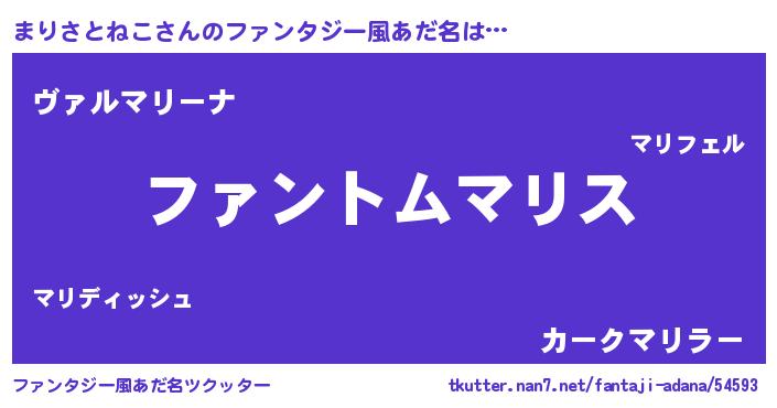 | 意味不明あだ名 | 『とにかく怪しいまりさとねこ』 |