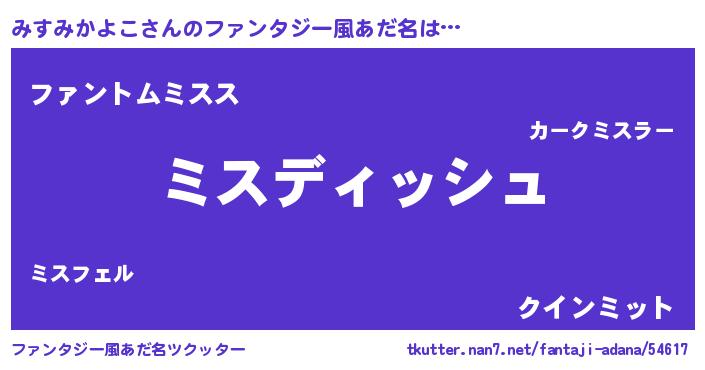 | ヘコむあだ名 | 『みすみかよこ(笑)』『みすお』 |