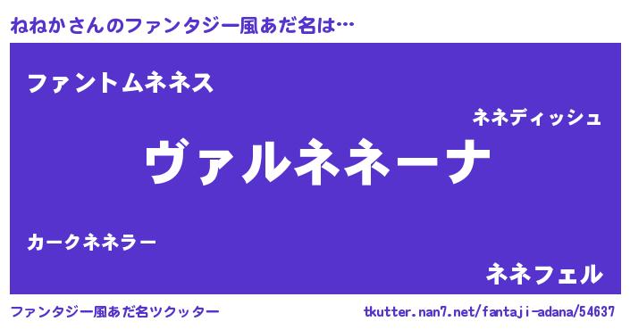 | 男性向けラノベタイトル風あだ名 | 『この素晴らしい世界にねねかを!』 |