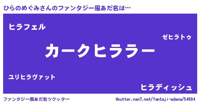 | 男性向けラノベタイトル風あだ名 | 『ひらのめぐみに滅ぼされるだけの簡単なお仕事です』 |