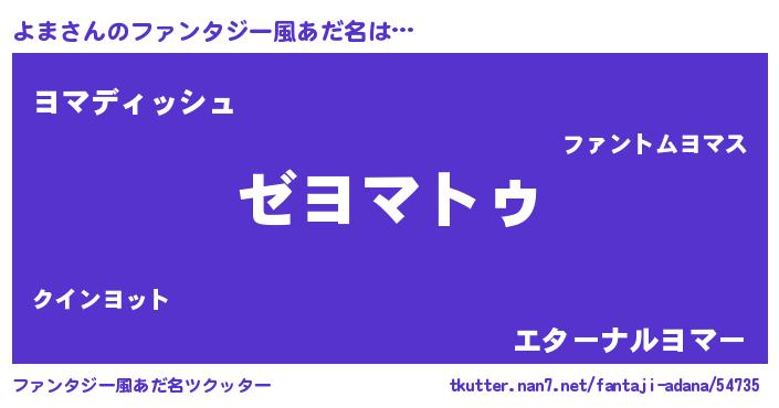 | ポケモン風あだ名 | 『ヨマセウス』『ゼニヨマ』『ヒヨマ』 |