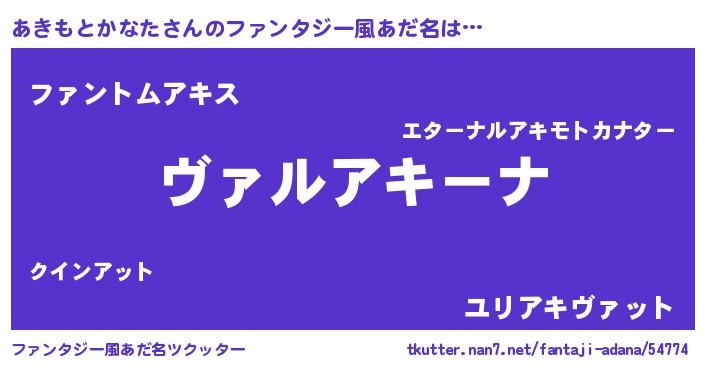 | 女子向けラノベタイトル風あだ名 | 『乙女ゲームの破滅フラグしかない悪役あきもとかなたに転生してしまった…』 |