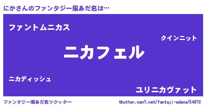 | ポケモン風あだ名 | 『ニカゴンZ』『ニカチュウ』『ヒニカ』 |