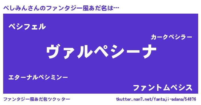 | 女子向けラノベタイトル風あだ名 | 『乙女ゲームの破滅フラグしかない悪役ぺしみんに転生してしまった…』 |