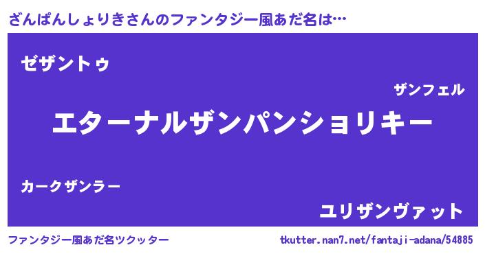 | 意味不明あだ名 | 『ざんぱんしょりきフォーエバー』 |