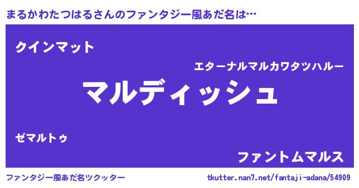 | 意味不明あだ名 | 『永久保存まるかわたつはる』 |