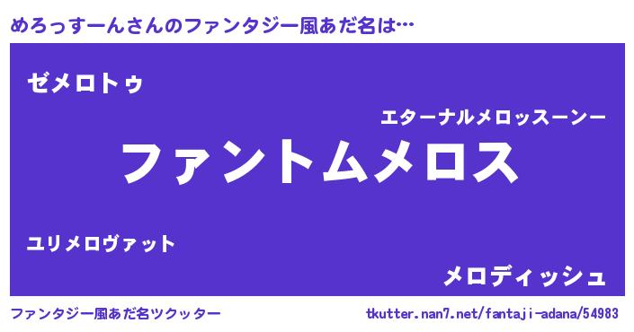 | 胡散臭い通販商品みたいなあだ名 | 『信頼と実績のサプリメント…その名も「めろっすーん」』 |
