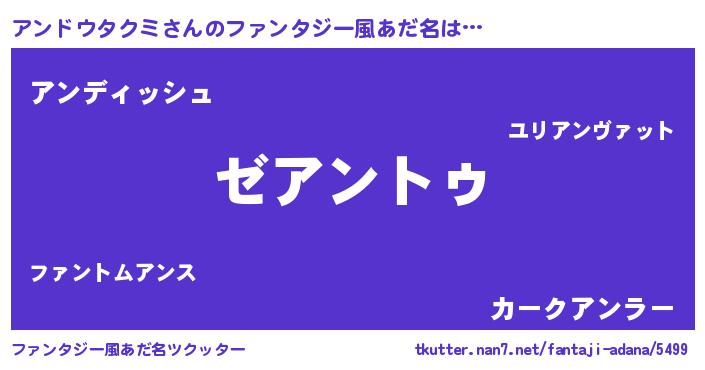 | 意味不明あだ名 | 『自称アンドウタクミ』 |