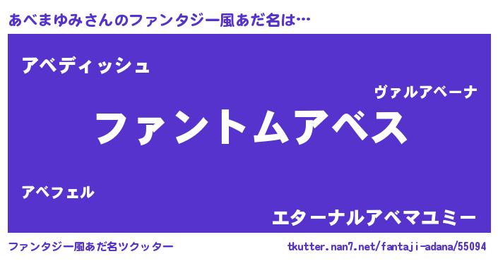 | ポケモン風あだ名 | 『ヒアベマユミ』『ゼニアベ』 |