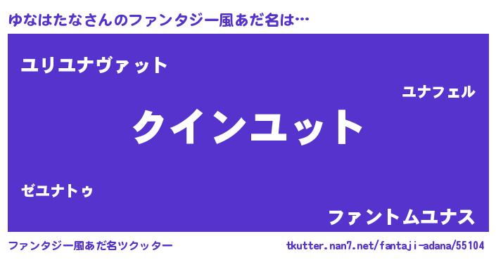 | 男性向けラノベタイトル風あだ名 | 『ノーゲーム・ノーユナハタナ』 |