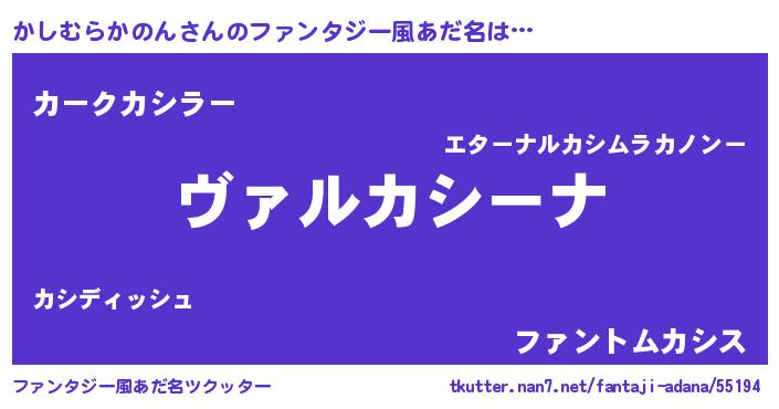 | 男性向けラノベタイトル風あだ名 | 『この素晴らしい世界にかしむらかのんを!』 |