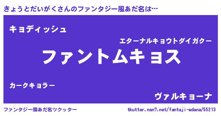 | ヒーロー風カッコイイあだ名 | 『暗黒騎士キョ』『ネオキョウトダイガク』 |