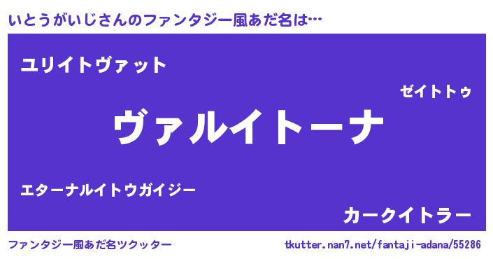 | 男性向けラノベタイトル風あだ名 | 『魔弾の王といとうがいじ』 |