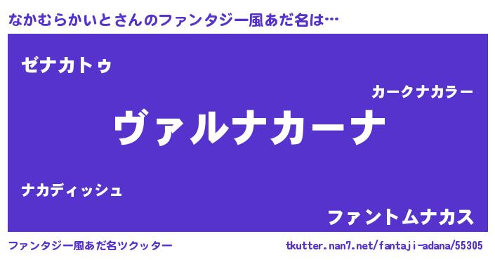 | 男性向けラノベタイトル風あだ名 | 『魔弾の王となかむらかいと』 |