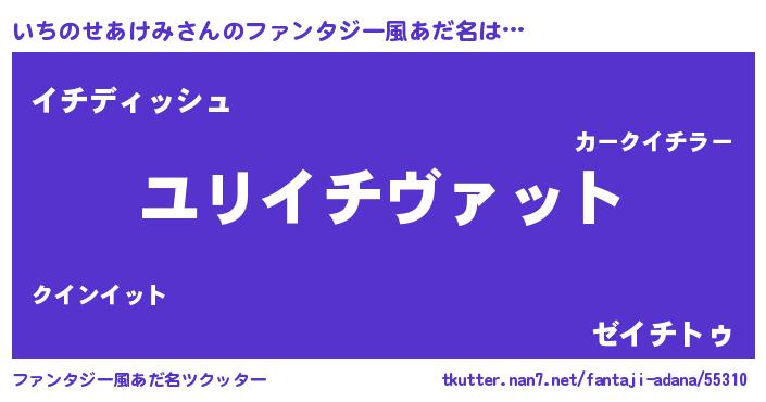 | 男性向けラノベタイトル風あだ名 | 『転生したらいちのせあけみだった件』 |