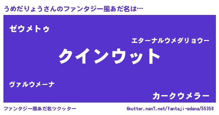 | ポケモン風あだ名 | 『ウックウザ』『ウメセウス』 |