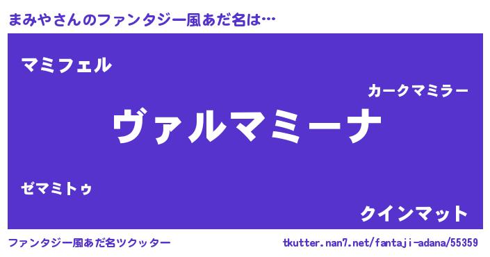 | 男性向けラノベタイトル風あだ名 | 『この素晴らしい世界にまみやを!』 |