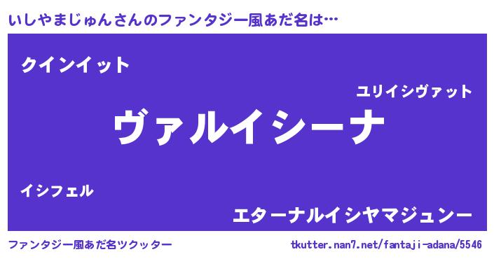 | 男性向けラノベタイトル風あだ名 | 『魔弾の王といしやまじゅん』 |
