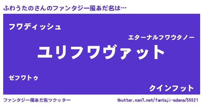 | 男性向けラノベタイトル風あだ名 | 『ふわうたのに滅ぼされるだけの簡単なお仕事です』 |