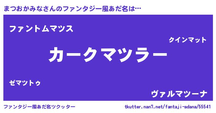 | 胡散臭い通販商品みたいなあだ名 | 『信頼と実績のサプリメント…その名も「まつおかみな」』 |