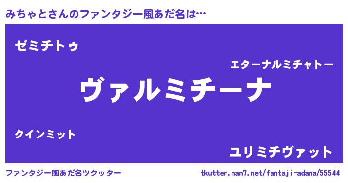 | 男性向けラノベタイトル風あだ名 | 『魔弾の王とみちゃと』 |