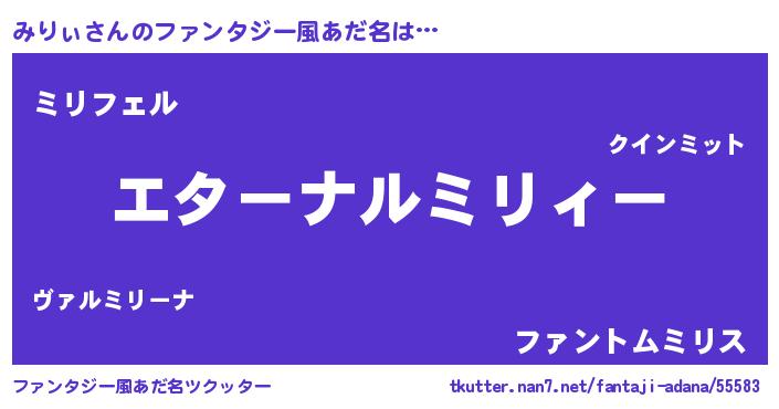 | 意味不明あだ名 | 『みりぃフォーエバー』『ペロリンみりぃ』 |