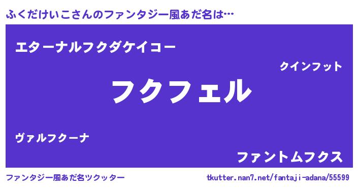 | 女子向けラノベタイトル風あだ名 | 『(仮)ふくだけいこのやんごとなき事情』 |