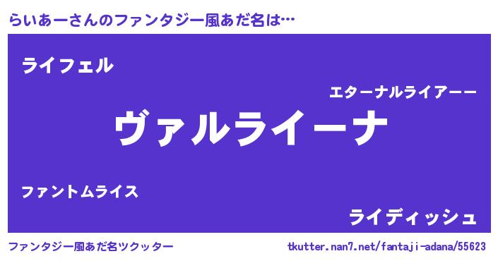 | 男性向けラノベタイトル風あだ名 | 『この素晴らしい世界にらいあーを!』 |