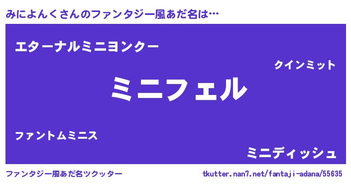 | 男性向けラノベタイトル風あだ名 | 『みによんくの憂鬱』 |