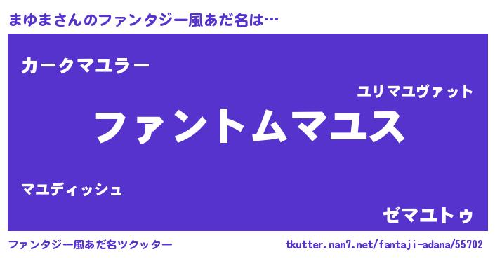 | 意味不明あだ名 | 『とにかく怪しいまゆま』『自称まゆま』 |