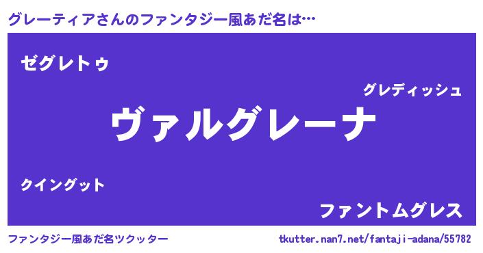 | 男性向けラノベタイトル風あだ名 | 『この素晴らしい世界にグレーティアを!』 |
