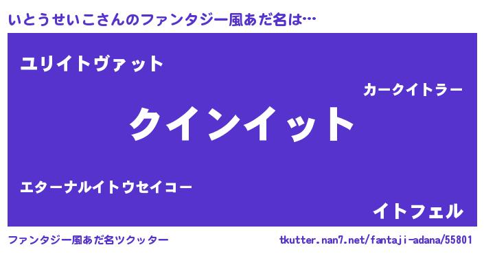 | 男性向けラノベタイトル風あだ名 | 『ノーゲーム・ノーイトウセイコ』 |