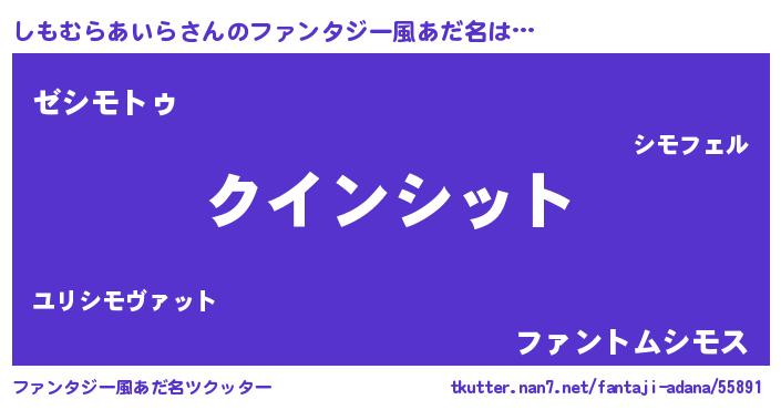 | 男性向けラノベタイトル風あだ名 | 『ノーゲーム・ノーシモムラアイラ』 |