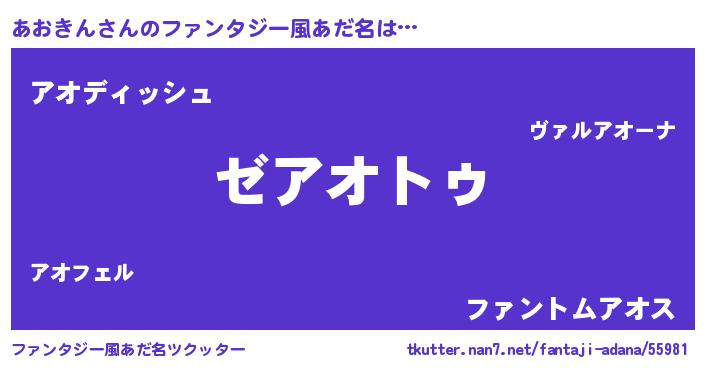| ポケモン風あだ名 | 『アオセウス』『ゼニアオ』 |