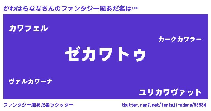 | 女子向けラノベタイトル風あだ名 | 『かわはらなななんてお断りですっ。』 |