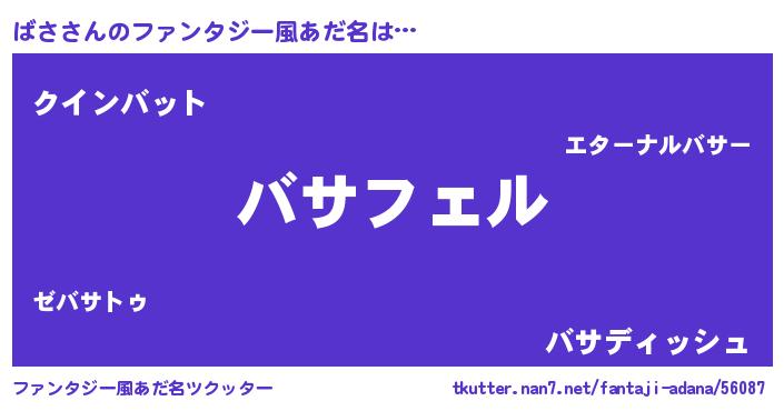 | 男性向けラノベタイトル風あだ名 | 『バサアートオンライン』 |