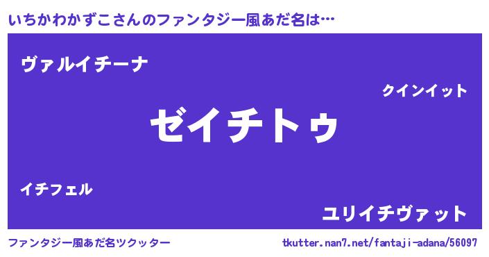 | 男性向けラノベタイトル風あだ名 | 『Re:いちかわかずこから始める異世界生活』 |
