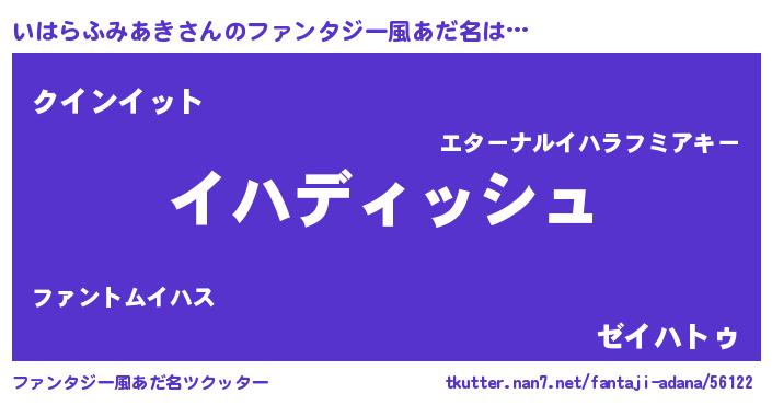 | 男性向けラノベタイトル風あだ名 | 『いはらふみあきという概念が存在しない退屈な世界 』 |
