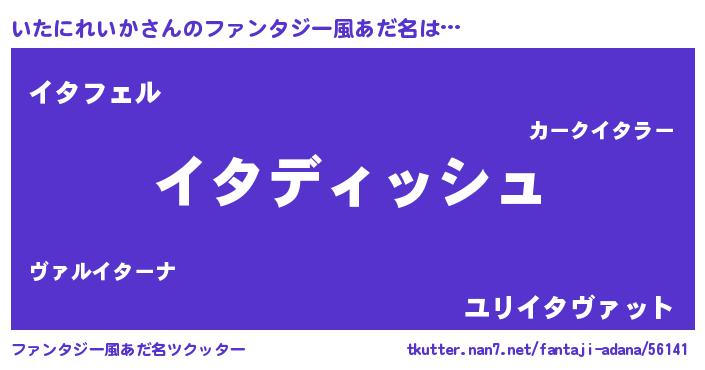 | ヒーロー風カッコイイあだ名 | 『ネオイタニレイカ』『仮面イタダー』 |
