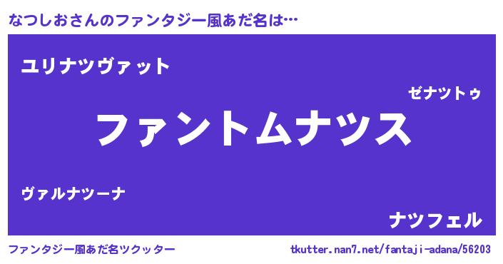 | ヒーロー風カッコイイあだ名 | 『天弓騎士ナツ』『スーパーナツシオ』 |