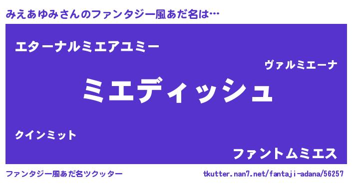| 意味不明あだ名 | 『永久保存みえあゆみ』 |