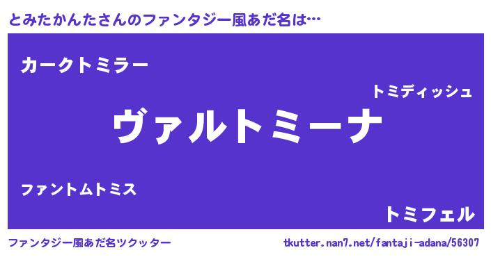| 男性向けラノベタイトル風あだ名 | 『この素晴らしい世界にとみたかんたを!』 |