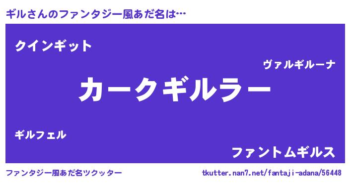 | 男性向けラノベタイトル風あだ名 | 『緋弾のギル』『ノーゲーム・ノーギル』 |