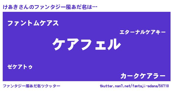 | 男性向けラノベタイトル風あだ名 | 『けあきの憂鬱』『魔法科高校のけあき』 |