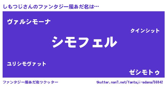| 男性向けラノベタイトル風あだ名 | 『しもつじの憂鬱』 |